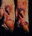 Lepuh-lepuh yang terbentuk biasanya segera pecah dan meninggalkan luka erosi, berwarna merah dengan permukaan luka bergranuler. Lesi ini dapat dijumpai pada mukosa mulut, hidung, kulit antara kuku dan ambing.